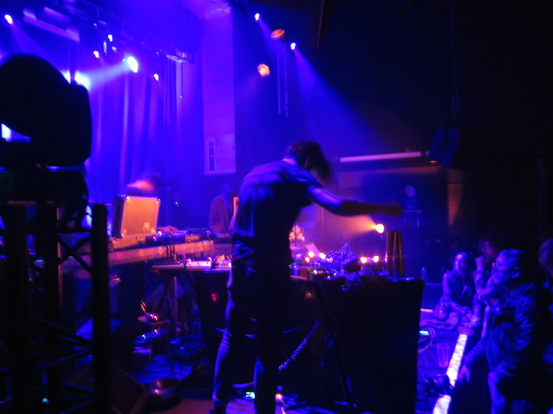 Fred : Au début y avait pas forcément d'idée de faire des concerts, on savait pas trop quoi. On s'amusait bien, c'était un peu en dehors de nos champs, c'était un truc un peu léger, un peu free. Et puis on a eu la possibilité de faire notre deuxième concert, qui s'est retrouvé être Earth, à l'église Saint Merri ; c'était une commande et sur cette commande là on avait envie de jouer avec Paul, qui avait déjà travaillé avec Grégory et qui maintenant travaille pour Oiseaux Tempête, qui est un bon pote de Saåad, donc on l'a recruté comme ça. Et puis avec Christine que je connaissais depuis un moment, on s'est dit qu'il y avait un truc à trouver entre les ondes Martenot et des synthés analogiques, du bruit fait de manière empirique (comme ce qu'a fait Grégory ce soir)... On est partis un peu là dessus, on a fait quelques répétitions sur la BO de Earth, pour Christine c'était un saut dans le vide complet...
